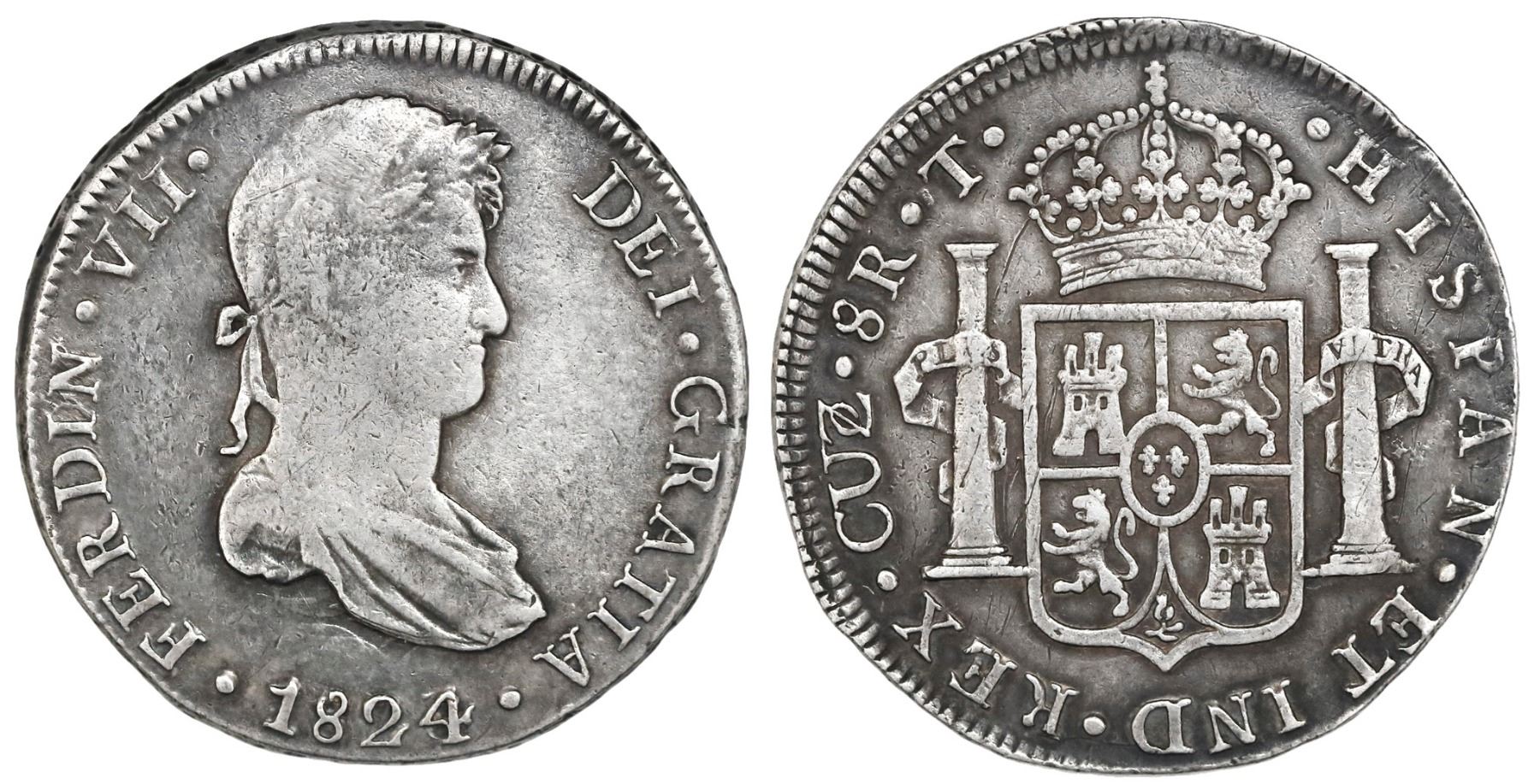 Cuzco, Peru, bust 8 reales, Ferdinand VII, 1824/3T, rare.