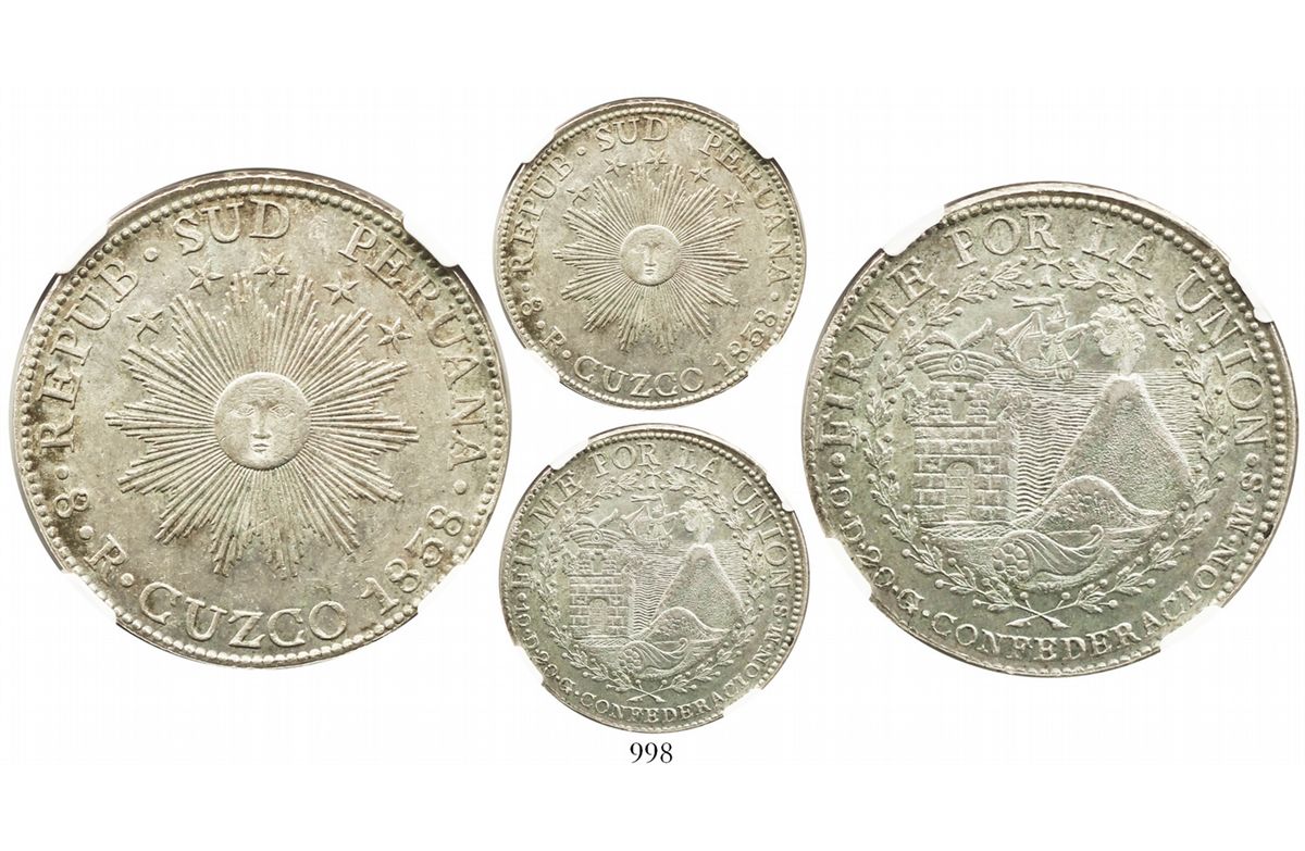 Cuzco, South Peru, 8 reales, 1838MS, encapsulated NGC MS 62. KM-170.4 Subtle toning and luster but choice details as usual, popular and attractive type in close to top grade.