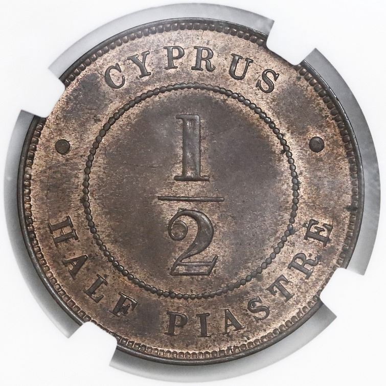 Cyprus, bronze 1/2 piastre, Victoria, 1879, NGC MS 64 BN.