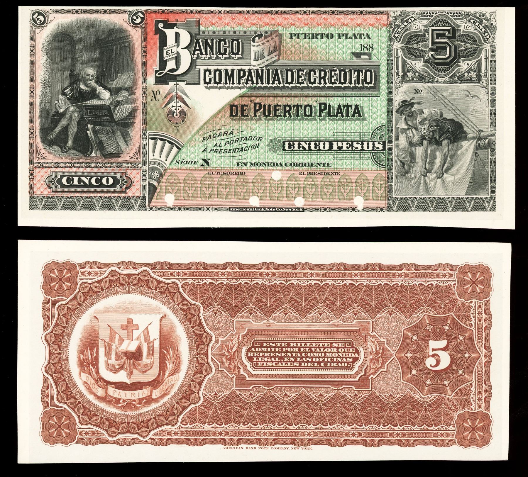 DOMINICAN REPUBLIC, Puerto Plata, Banco de la Compañía de Crédito de Puerto Plata, 5 pesos obverse a
