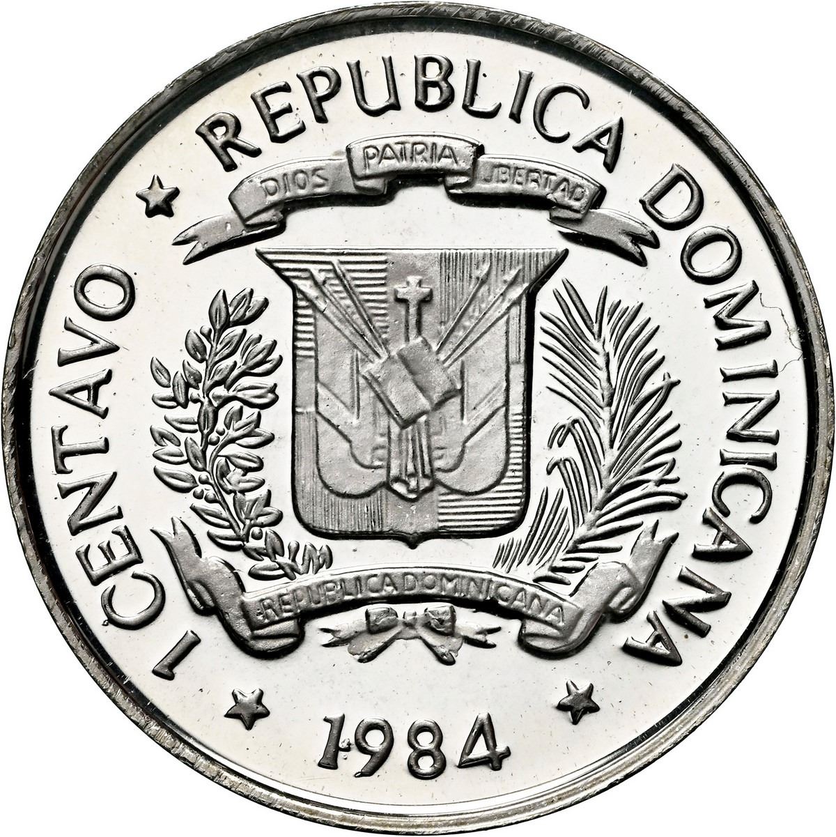 DOMINICAN REPUBLIC, struck at the Mexico City mint, off-metal proof 1 centavo in silver, 1984, Caona