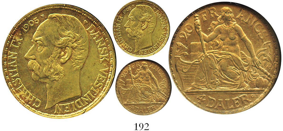 Danish West Indies, 4 daler, Christian IX, 1905-P, rare.