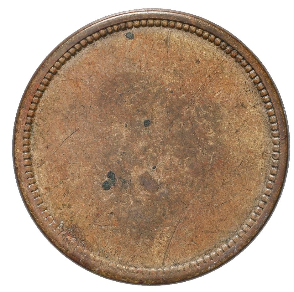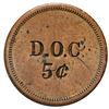 Danish West Indies, small uniface brass 5 cents token, D.O.C., ca. 1890, unique, ex-Byrne, Higgie Pl