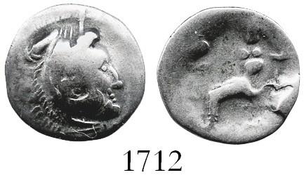Danubian region, silver imitation of an Ancient Greek drachm of Alexander the Great, ca. 300-200 BC. 3.3 grams. Helmeted Heracles on obverse, Zeus on throne on reverse, Fine.