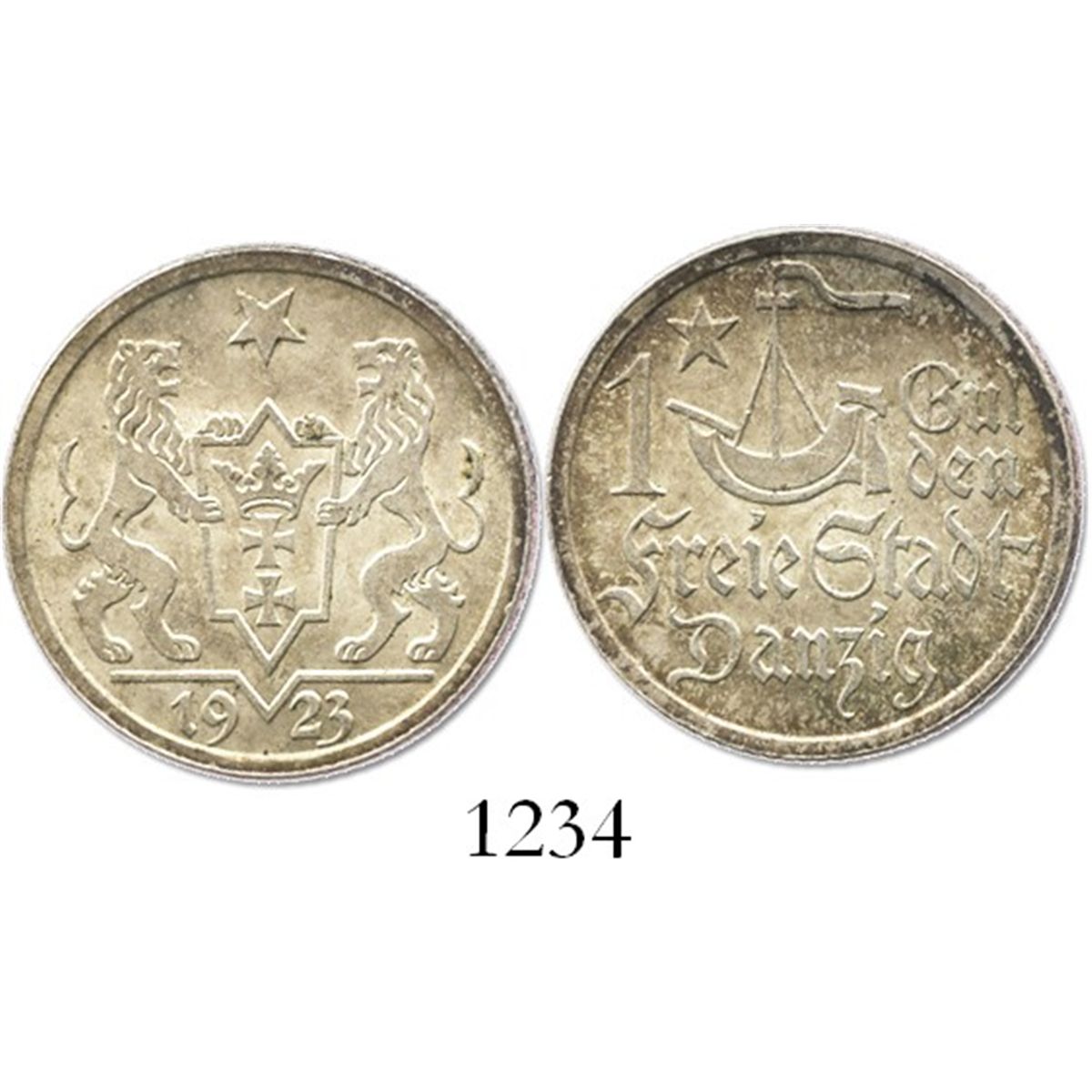 Danzig (Poland), 1 gulden, 1923. KM-145. 5.0 grams. Lustrous and lightly toned UNC, popular issue from a German-Polish pawn between the two World Wars.