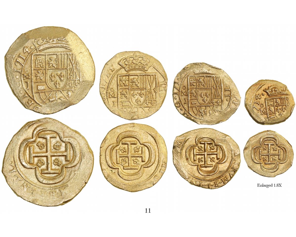 Denomination set of Mexico City, Mexico, cob 8-4-2-1 escudos, 1714J, from the 1715 Fleet.