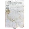 Document from 1817 from Colima, Mexico, with many seals and signatures. 8-3/8" x 12-1/4". Four-page document with seals of Charles IV and Ferdinand VII (dated 1808-9, 1812-13 and 1816-17) with several short paragraphs above signatures (most of them José Ignacio Silva), related to church offerings, all in readable condition but with some minor water damage.