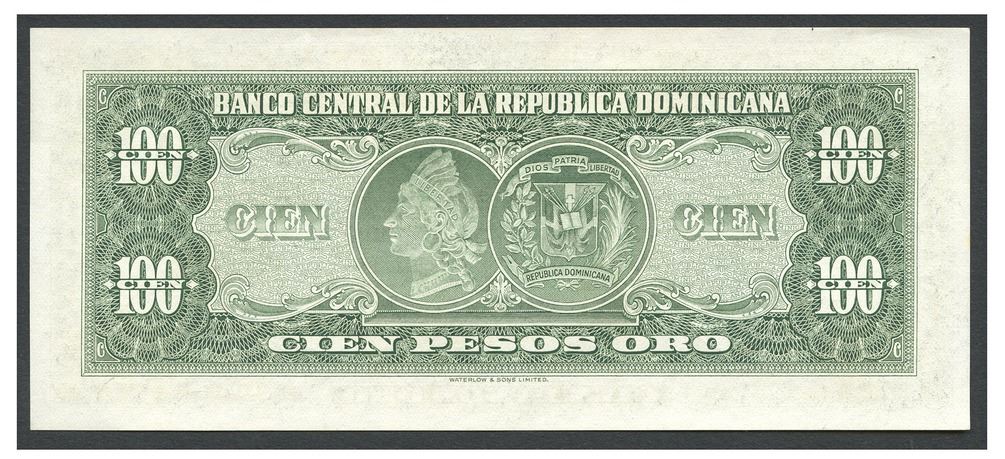 Dominican Republic, Banco Central de la Republica Dominicana, 100 pesos oro, no date (1947), serial