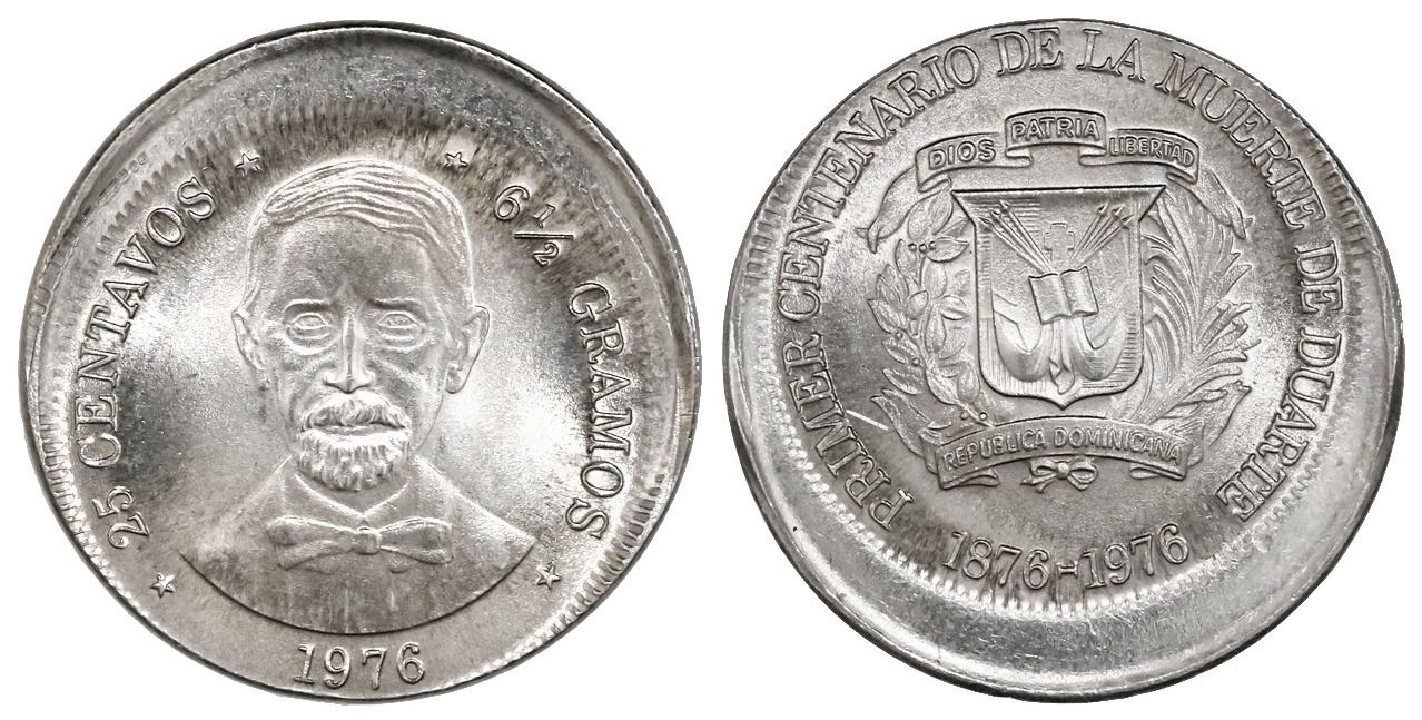 Dominican Republic, copper-nickel 25 centavos, 1976, struck 10% off-center error.