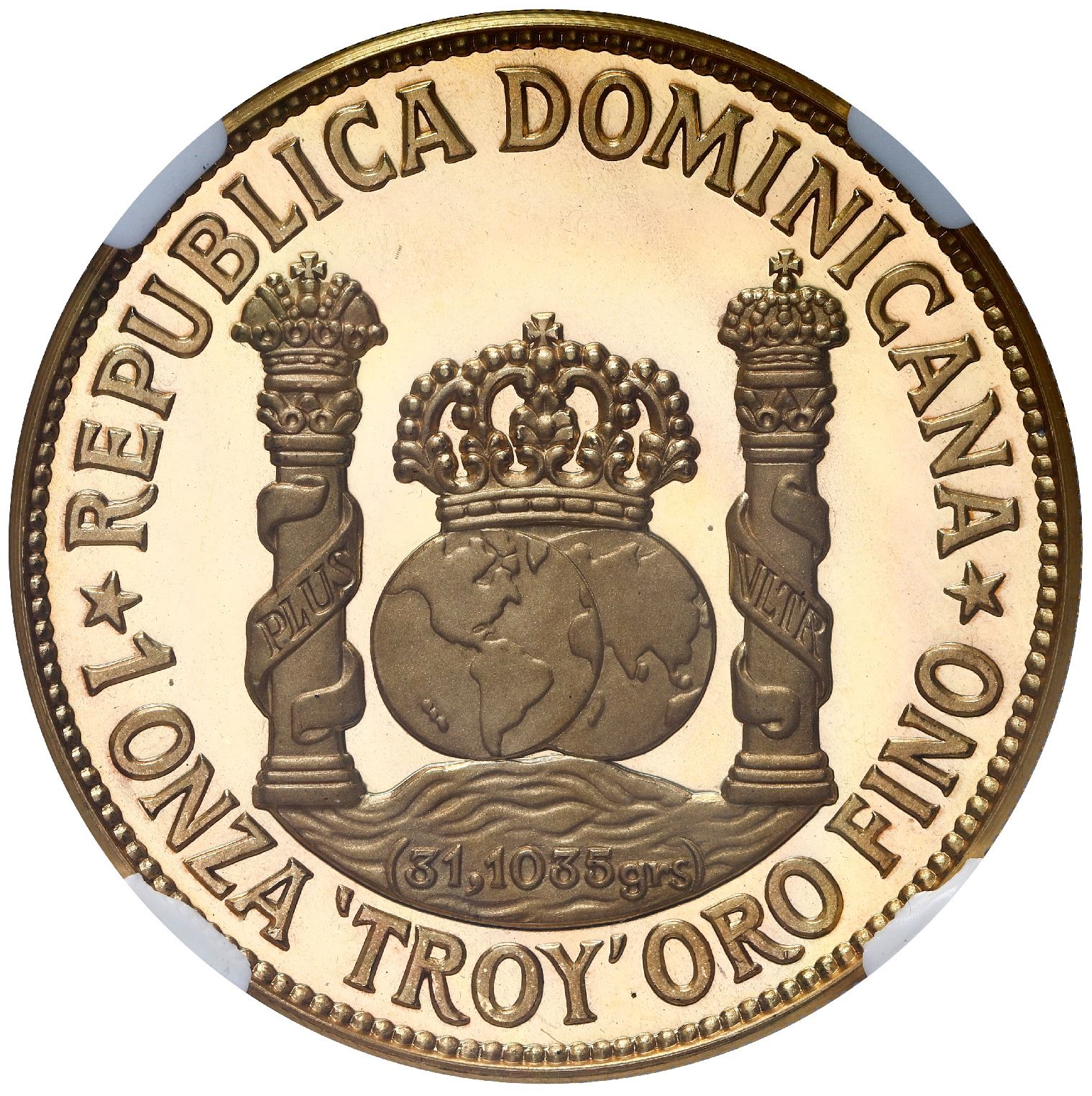 Dominican Republic, gold proof 100 pesos (1 oz medallic coinage), 1980, Enriquillo, NGC PF 68 Ultra