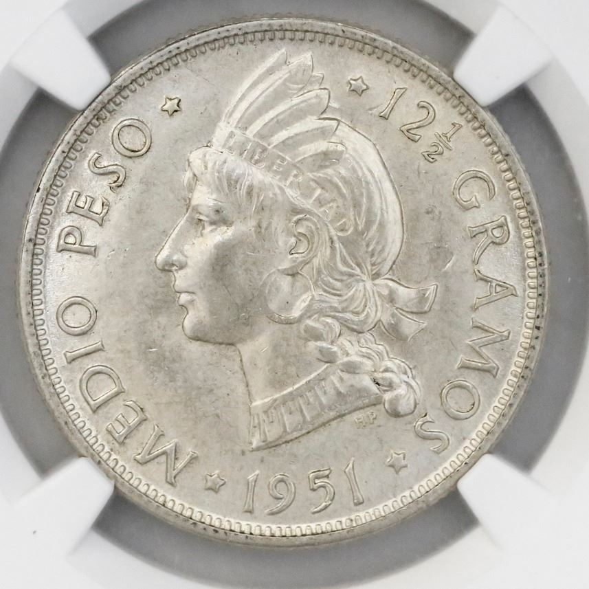 Dominican Republic (struck at the Philadelphia Mint), 1/2 peso, 1951, NGC MS 63.