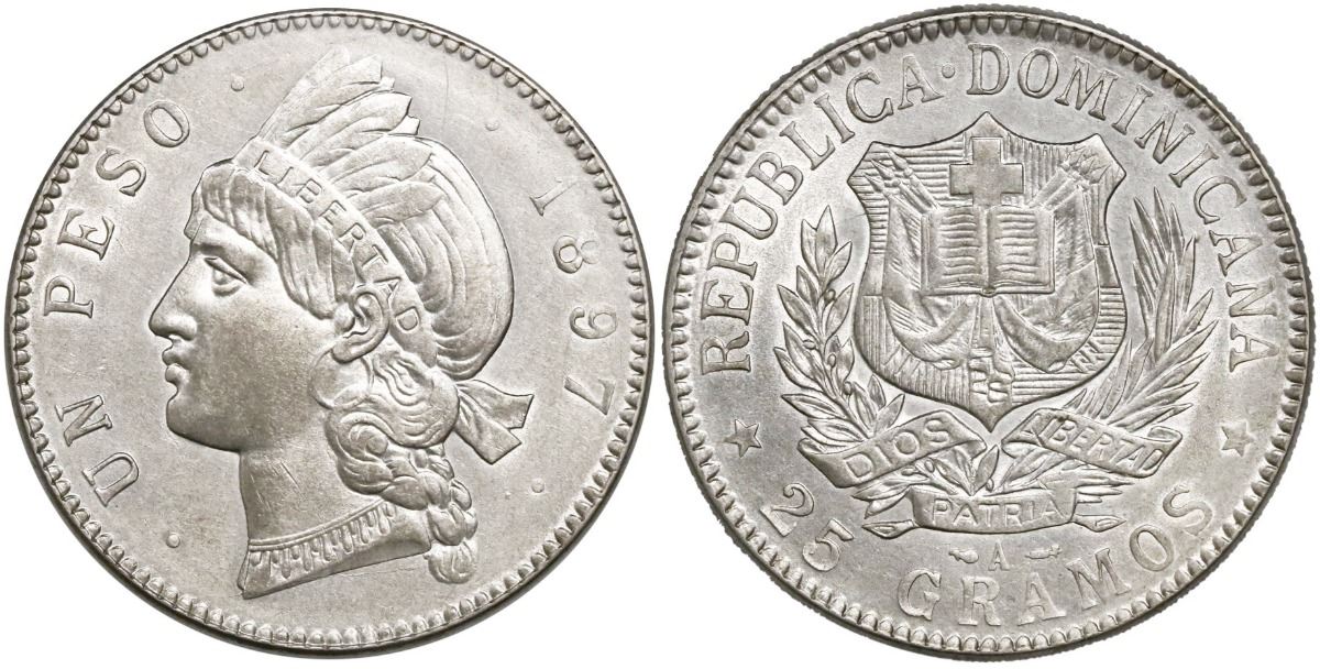 Dominican Republic (struck in Philadelphia from dies made in Paris), 1 peso, 1897-A.