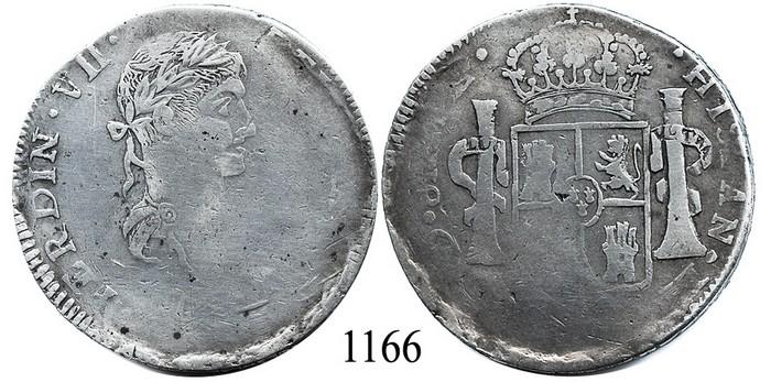 Durango, Mexico (War for Independence), bust 8 reales, Ferdinand VII, date not visible, assayer MZ (1812-18). KM-111.2. 27.2 grams. Lustrous AVF with mostly weak and crude strike (as usual), lightly toned all over.