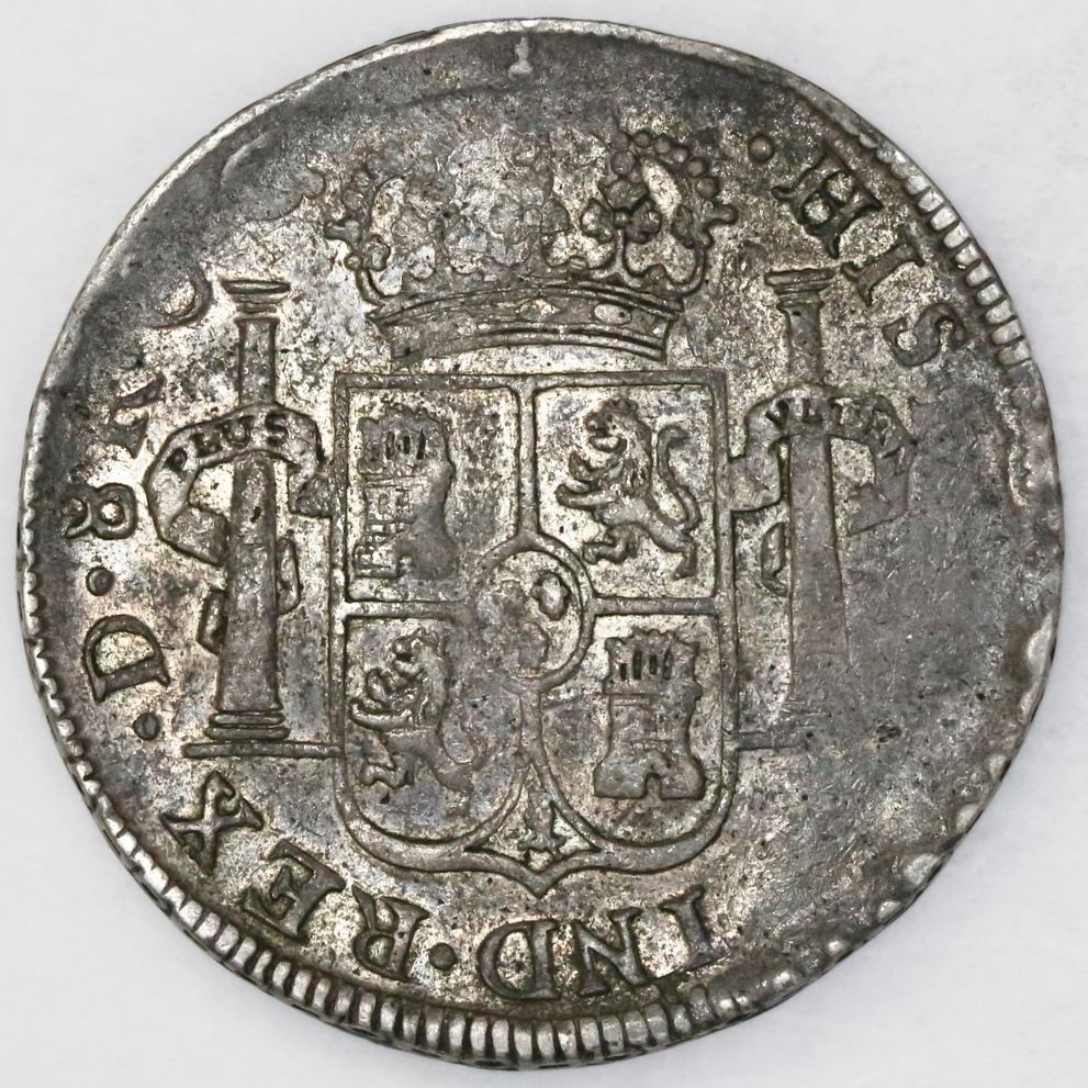 Durango, Mexico, bust 8 reales, Ferdinand VII, 1822CG. CT-424; KM-111.2. 26.56 grams. AU for the type (which normally comes very crude) with luster in some recessed areas. Missing about half of legends due to very weak strike.
