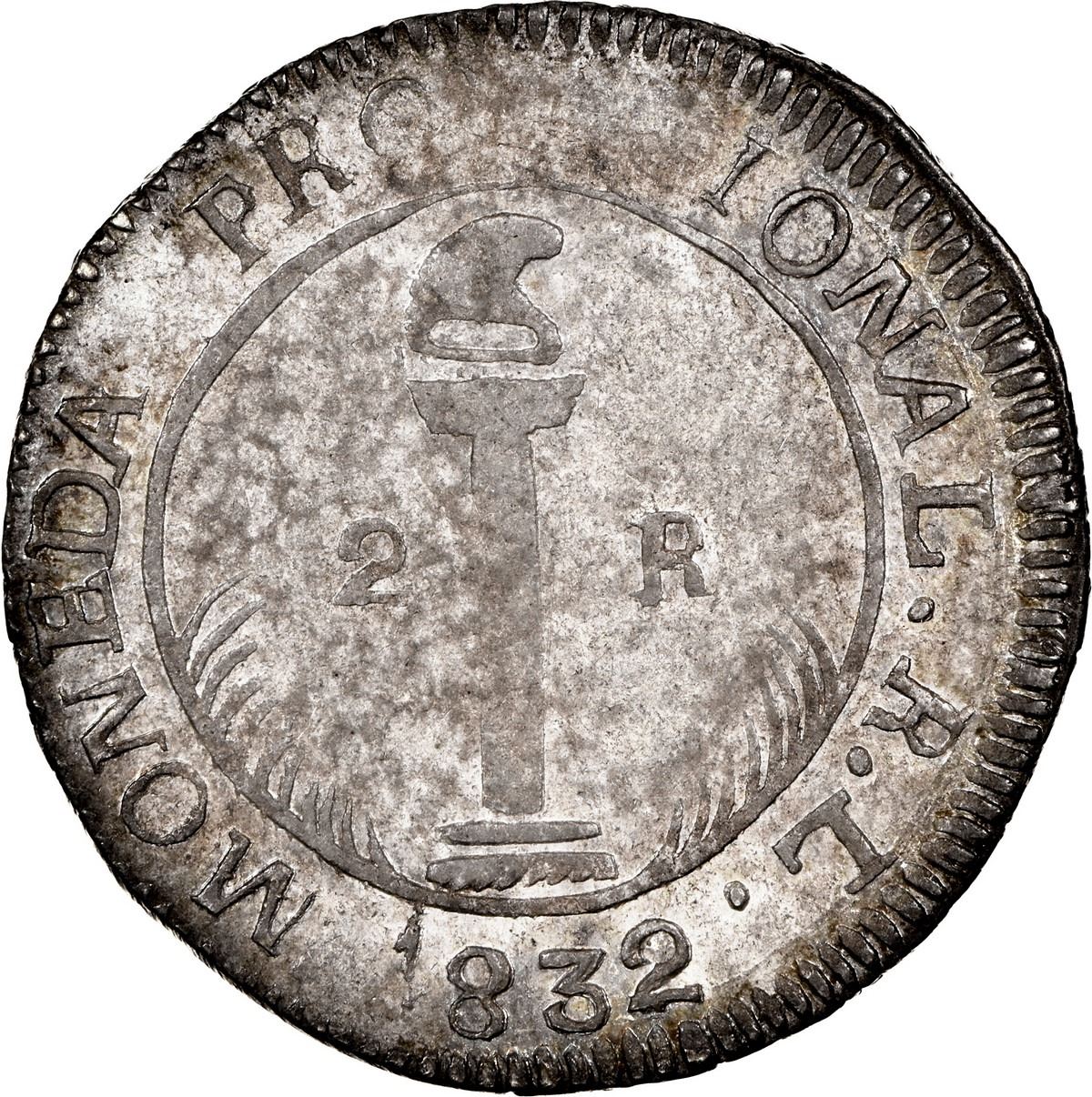 EL SALVADOR, San Salvador, provisional 2 reales, 1832 RL, SALVADOR, solid circle, NGC XF 40.