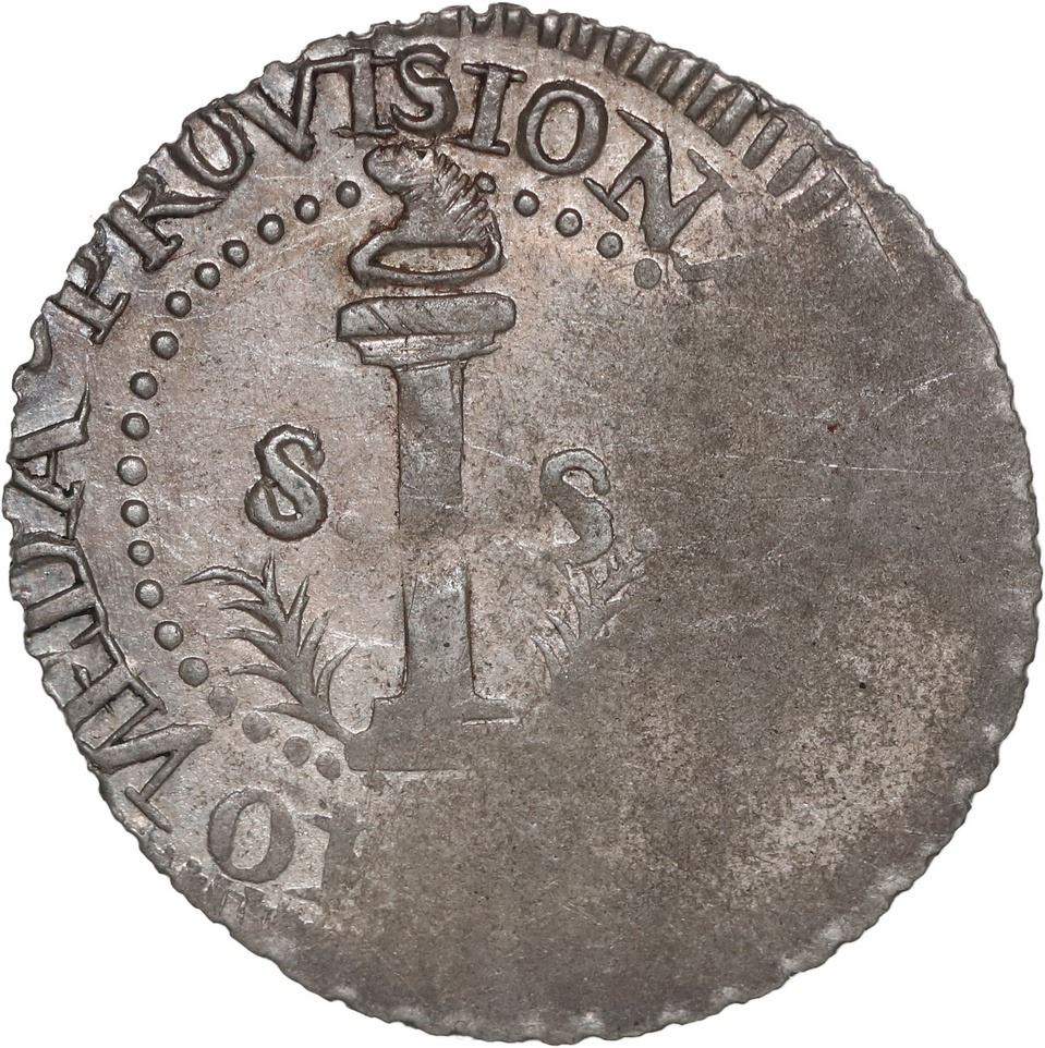 EL SALVADOR, San Salvador, provisional 2 reales, date not visible (1832), legend POR LA LIBERTAD SALVADOR, 270-degree axis rotation. KM-11.16; Villavicencio-B1b1 var; Jovel-Yonaka-A2. 3.75 grams. Choice grade (lustrous AU+ in light steel-gray color) but unevenly struck such that the date is not visible (some scratches in flat areas), yet with other parts of legend very clear, including full SALVADOR and full retrograde N in MONEDA, also notably in nearly three-quarters rotation from usual medal axis, a characteristic of Villavicencio's Type A but not Type B to which this coin's dies belong (left-pointing hat, for instance), hence possibly rare and of importance to the specialist.