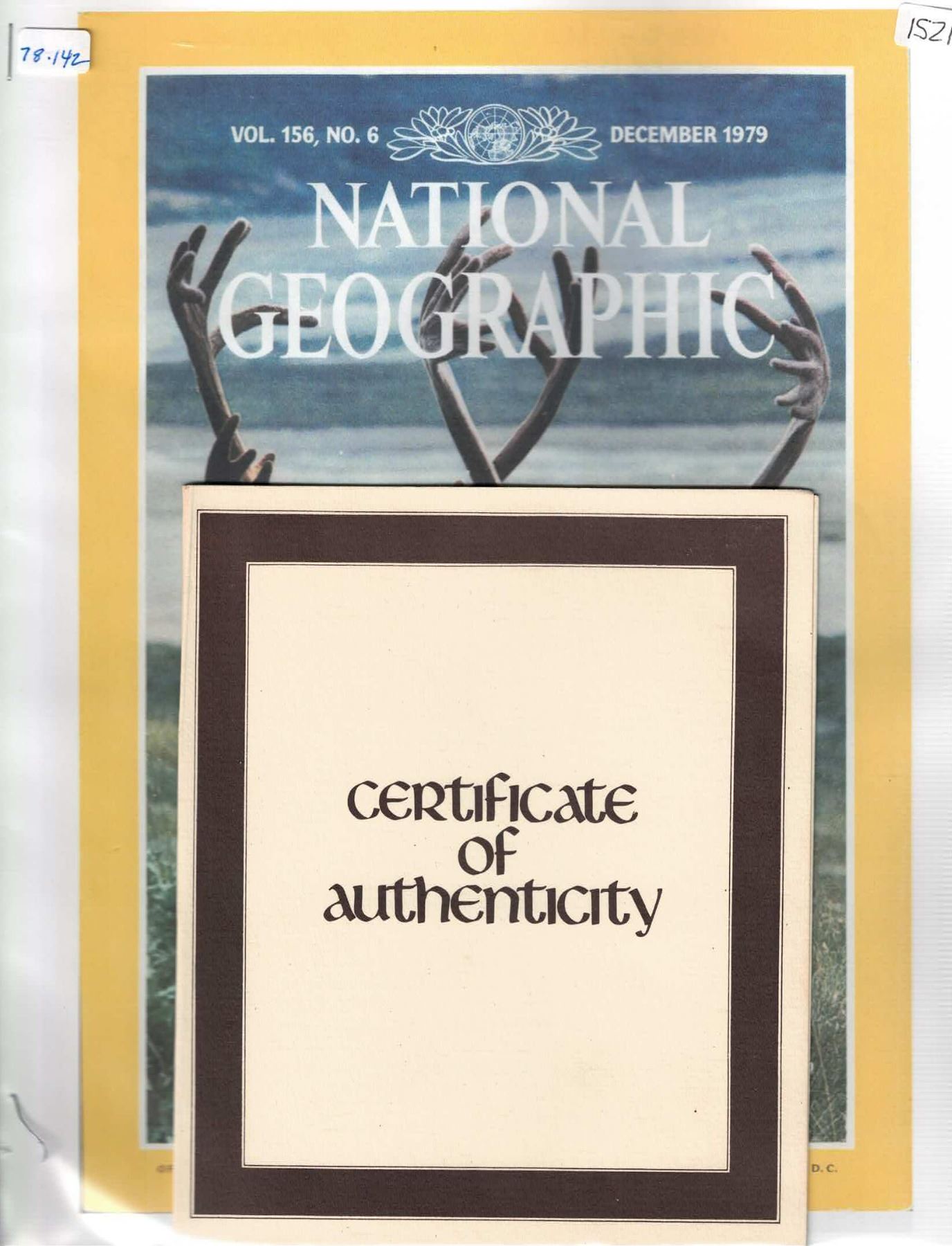 Earthenware "olive" jar with wooden stand, ex-Guadalupe (1724). 3637 grams. 11" tall, 8½" in diameter at shoulders. Spanish-manufactured clay beehive olive jar with slightly raised horizontal bands and small rolled lip, intact with a small bit of encrustation near the bottom, dried olive pits wrapped in paper on the inside and small wooden stand for display, known to have been salvaged from the Guadalupe site. FRAGILE - PICK UP IN PERSON RECOMMENDED. From the Guadalupe (1724), with original certificate from Captain Tracy Bowden through his contract with the Dominican Republic and copy of the article "Graveyard of the Quicksilver Galleons" by Mendel Peterson from the December 1979 issue of National Geographic.