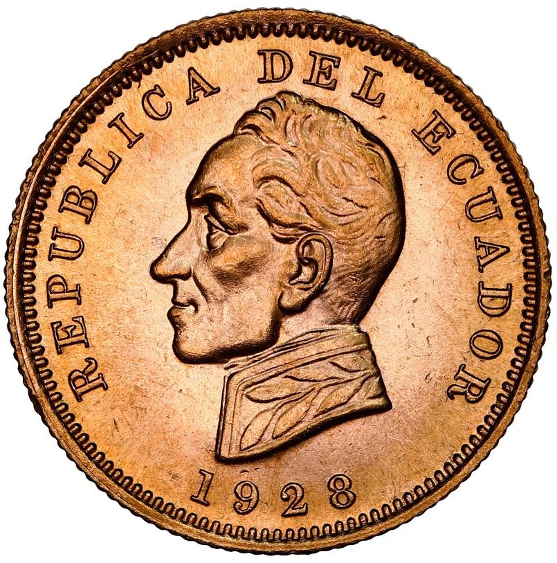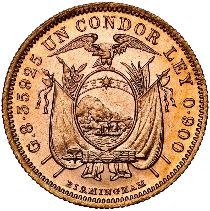 Ecuador (struck in Birmingham, England), gold 1 condor, 1928, NGC MS 63.