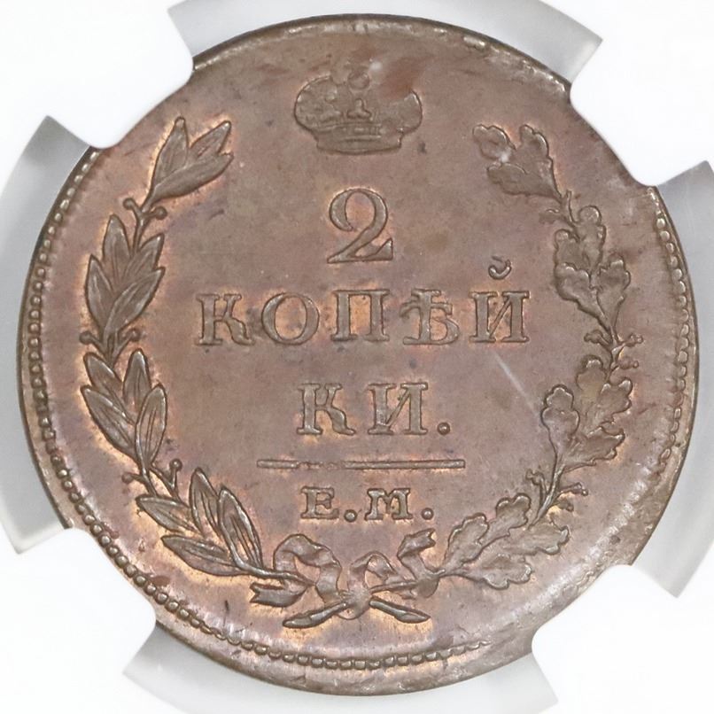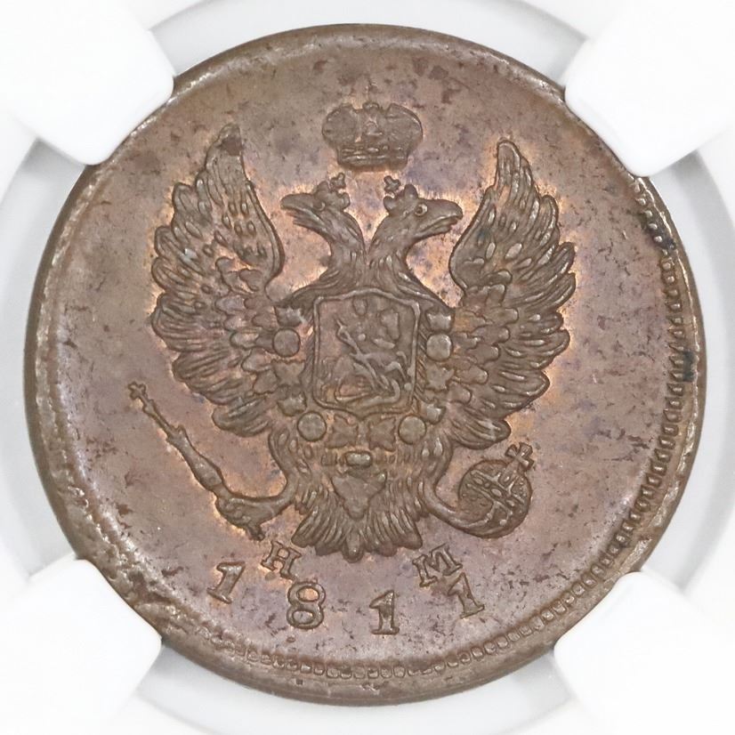 Ekaterinburg, Russia, bronze 2 kopeks, Alexander I, 1811EM-HM, plain edge, NGC MS 63 BN. KM-C118.3. Difficult type to find in Mint State, red-brown surfaces with bright red luster around design elements. NGC #4740383-012.