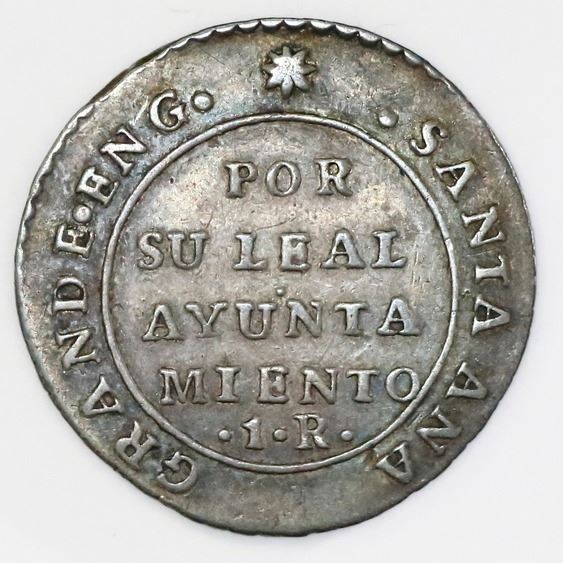 El Salvador, silver 1 real proclamation medal, Ferdinand VII, 1808. KM-M1; Herrera-77; Prober-190. 3.32 grams. AXF with crude rims, darkly rainbow toned. A very elusive and popular circulating proclamation medal struck in San Salvador when it was part of Guatemala.