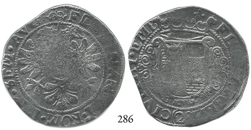 Emden, Germany (Holy Roman Empire), 28 stuber (2/3 thaler), Ferdinand II (1619-37). KM-10.1. 18.2 grams. Much flatness but minimal corrosion, dark tone, some bold legend, including mintmark EMB, scarce provenance. With Sedwick certificate. Recovered from: Lastdrager, sunk in 1653 off the Shetland Islands, north of Scotland