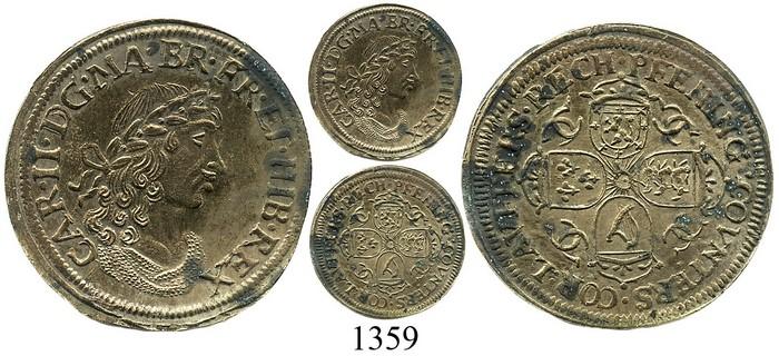 English brass gambling counter of Charles II. 1.4 grams, 7/8" in diameter. With portrait of Charles II on front and cruciform arms on back, legend of Charles II on both sides, this thin but perfectly intact token is very high grade (lustrous AU) and well detailed, just a few black spots against the brass color, used in the 1600s as a substitute for coins (since it gambling for money was frowned upon) in gambling parlors, very rare if not unique as from a shipwreck. Recovered from: Association, sunk in 1707 off the Scilly Isles, southwest of England. Pedigreed to the Lane auction of November 30,1979, lot #99, with original certificate.