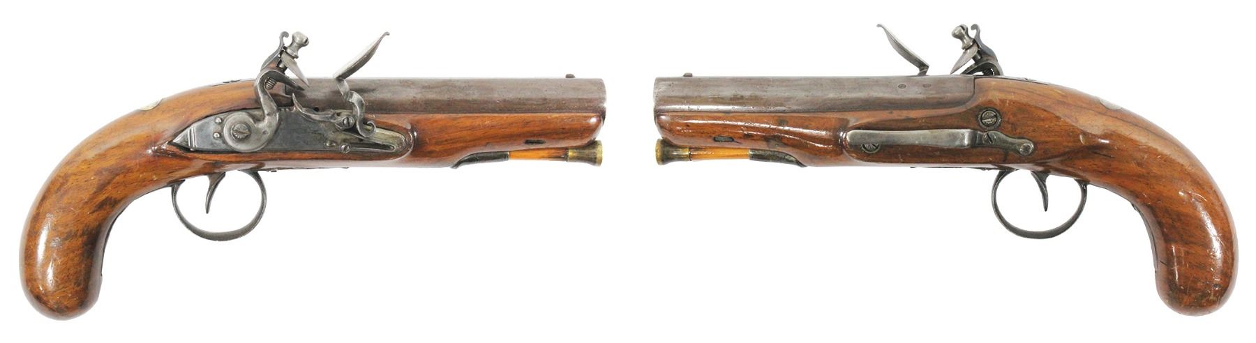 English large-bore flintlock officer's boarding pistol, early 1800s.
