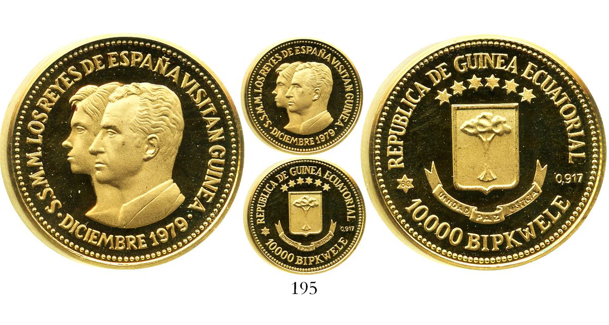 Equatorial Guinea, plain-edge cameo proof piedfort 10,000 bipkwele, 1979 Spanish royal visit (struck