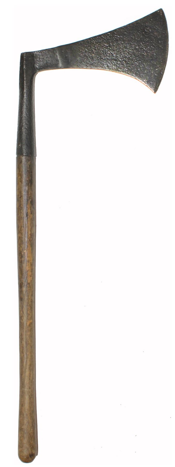 European felling axe, 1700s. 1750 grams, 30-12" overall length with 6-12" x 11-1/4" blade. Distinctively long blade (basically a treecutter's tool but also used for beheading), with pitted but stable and solid surface, aged (but not original) wooden handle. With photo-certificate.