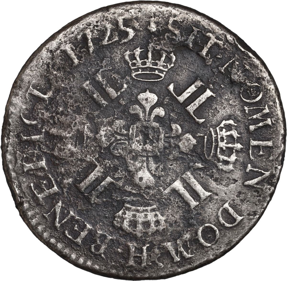 FRANCE, La Rochelle mint, ecu, Louis XV, 1725-H. Gad-320; KM-472.9. 21.12 grams. Dark and a bit corroded with a weak bust but nearly complete legends and clear date. Pedigreed to Sedwick Auction 12, with original lot-tag 716. Recovered from: Le Chameau, sunk in 1725 off Nova Scotia, Canada