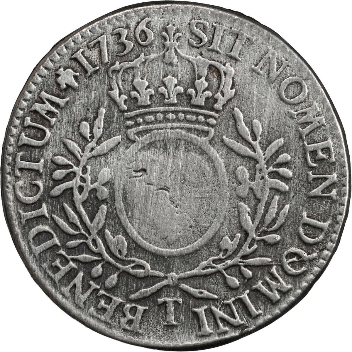 FRANCE, Nantes mint, ecu, Louis XV, 1736-T. Gad-321; Dupl-1675; KM-486.20; Dav-1330. 16.70 grams. VG/F details (weak in centers) and harshly scrubbed clean but without much visible corrosion (rather low weight, however), light toning on fields. Recovered from: La Auguste, sunk in 1761 off Nova Scotia, Canada