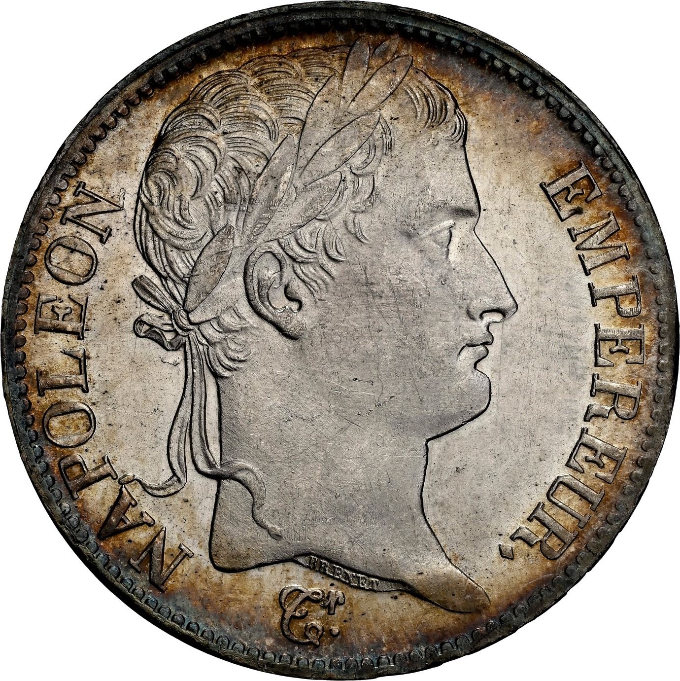 FRANCE, Paris mint, 5 francs, Napoleon I, 1811-A, NGC MS 63. KM-694.1; Gad-584. Satin-smooth surfaces with frosty luster ringed with beautiful peacock toning on obverse rim.