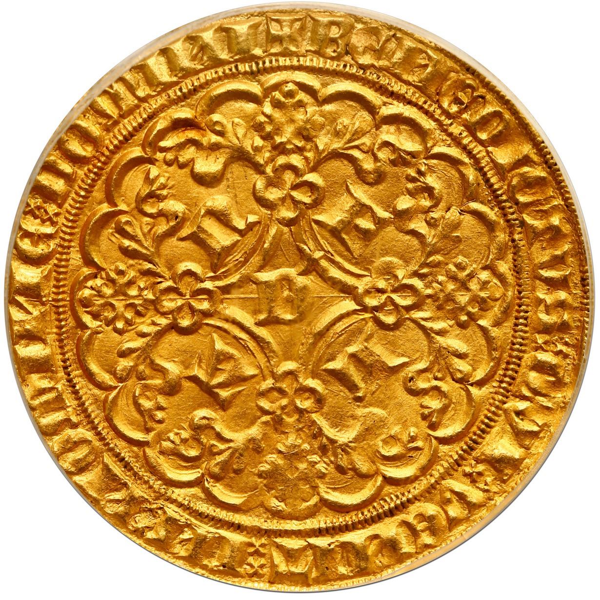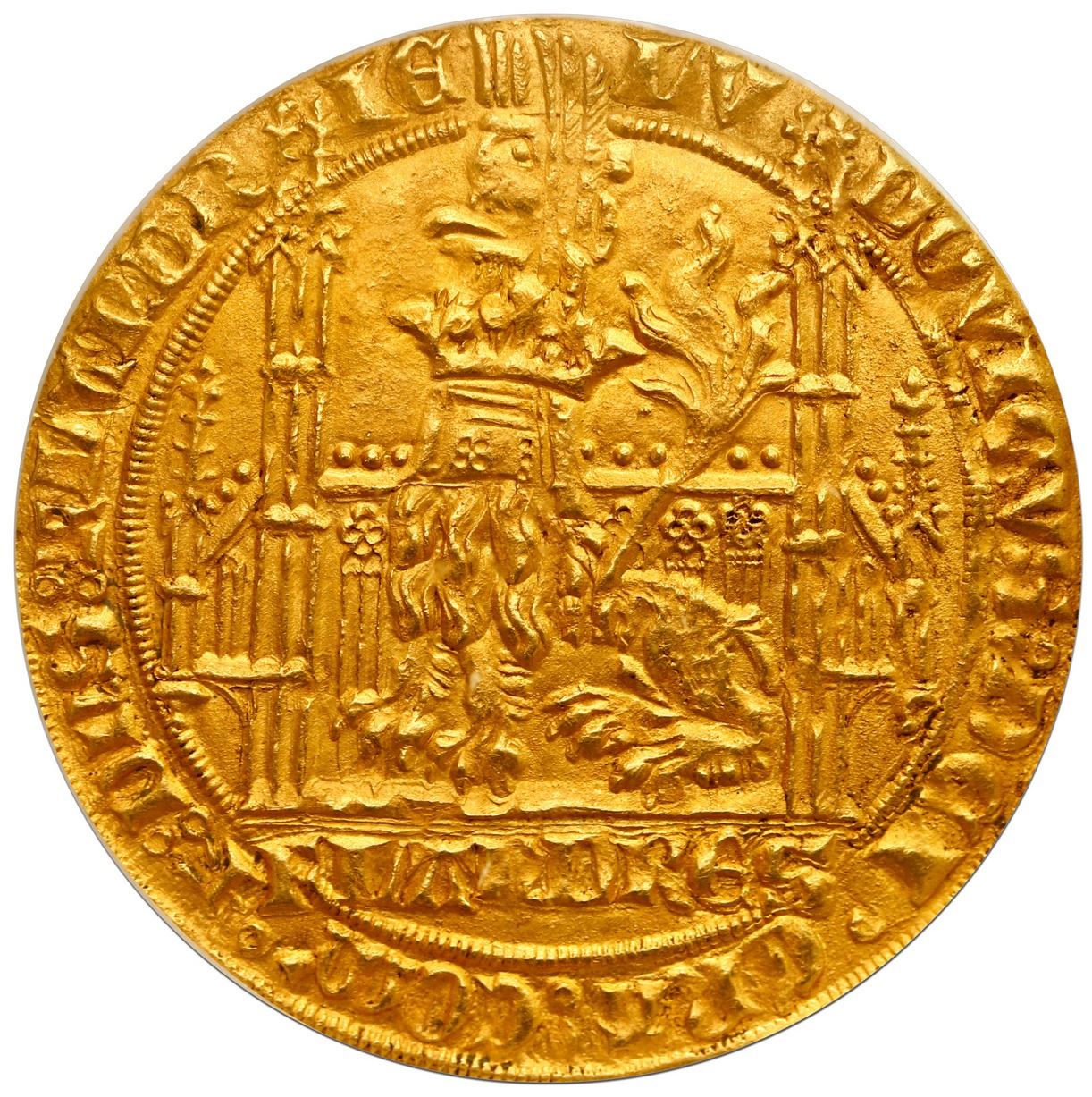 Flanders, Belgium, gold lion d'or, Louis II de Male (1346-84), PCGS MS63. Fr-157. Broad flan with 100% legends and inner details (all well struck), nice luster and no wear, a monument to the intricately artistic style that characterizes this period.