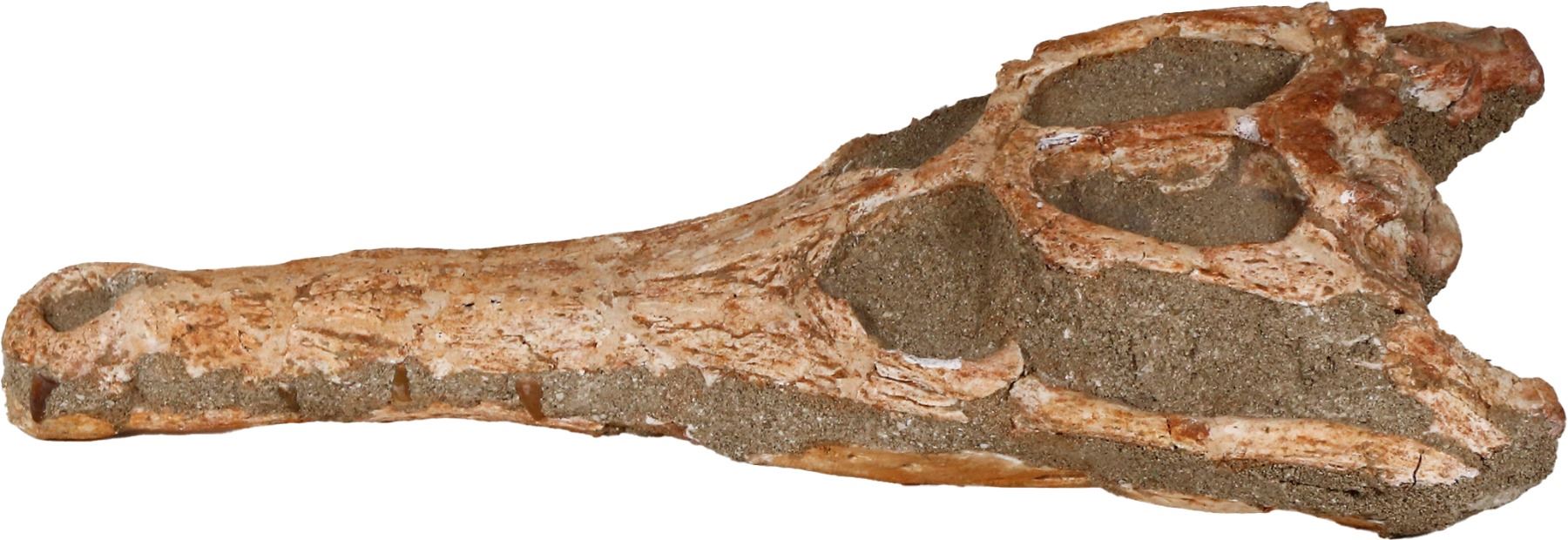 Fossilized crocodile skull, Cretaceous period, approx. 145 to 66 million years old, species Dyrosaur