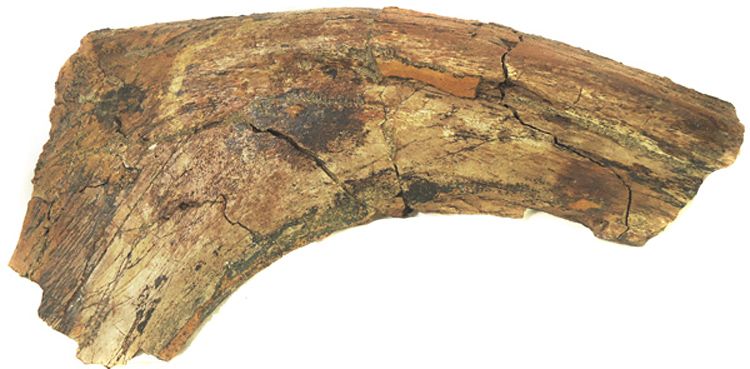 Fossilized triceratops rib segment from Hell Creek formation, Harden Co., South Dakota, approx. 65-1