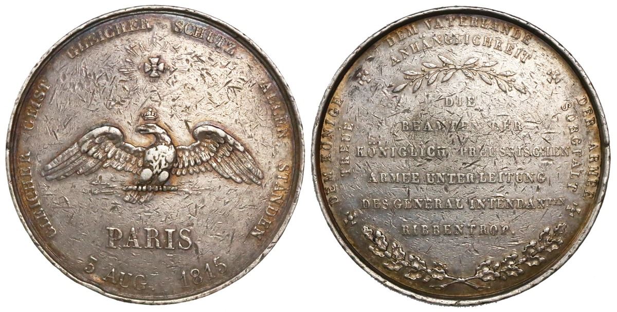 France, 5 francs-sized silver medal, 1815, Friedrich Wilhelm III birthday.