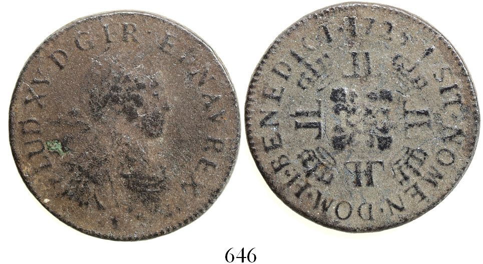 France (La Rochelle mint), ecu, Louis XV, 1725-H. KM-472.9. 21.96 grams. Sea-worn as usual but with clear details, toned and lightly encrusted as uncleaned. Recovered from: Le Chameau, sunk in 1725 off Nova Scotia, Canada