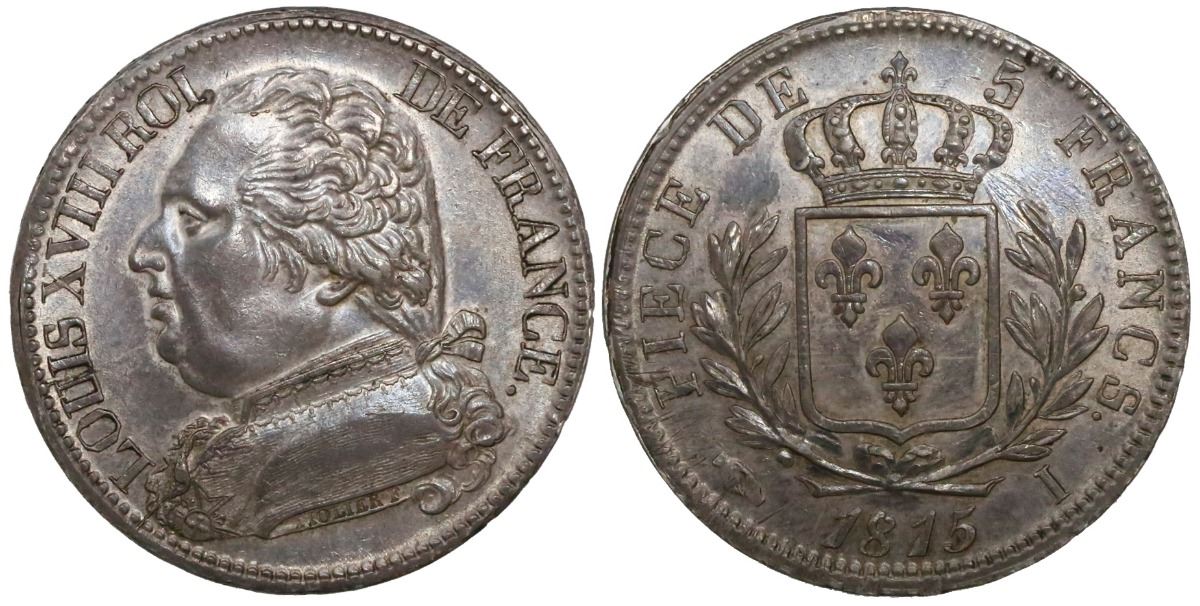 France (Limoges mint), 5 francs, Louis XVIII, 1815-I.