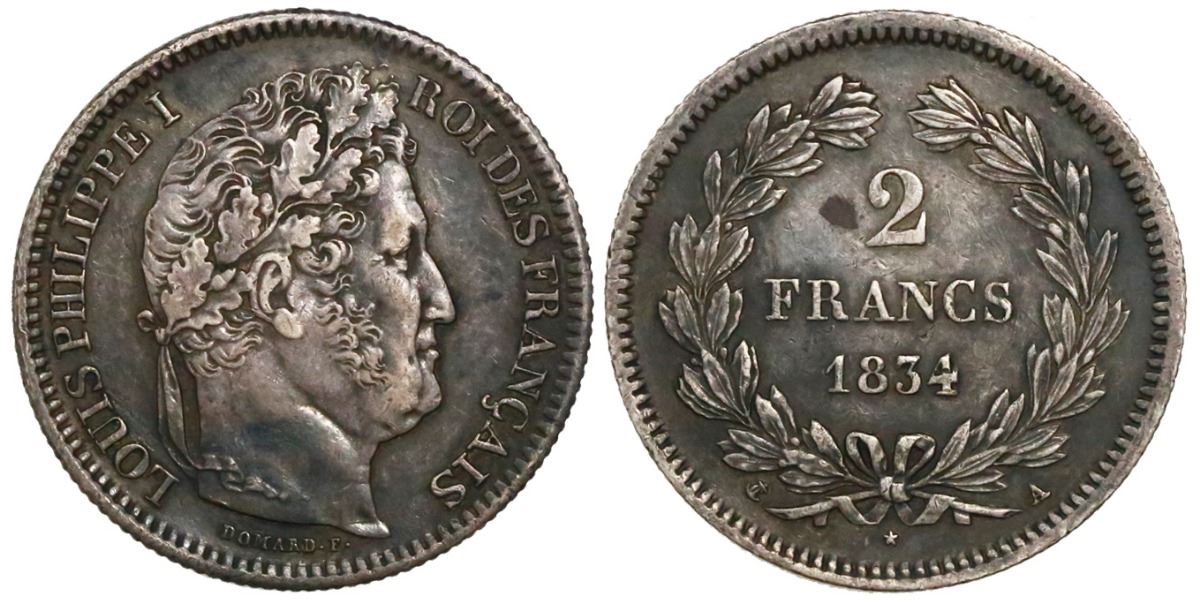 France (Paris mint), 2 francs, Louis Philippe I, 1834-A.