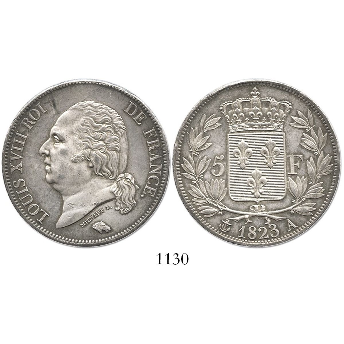 France (Paris mint), 5 francs, Louis XVIII, 1823-A.