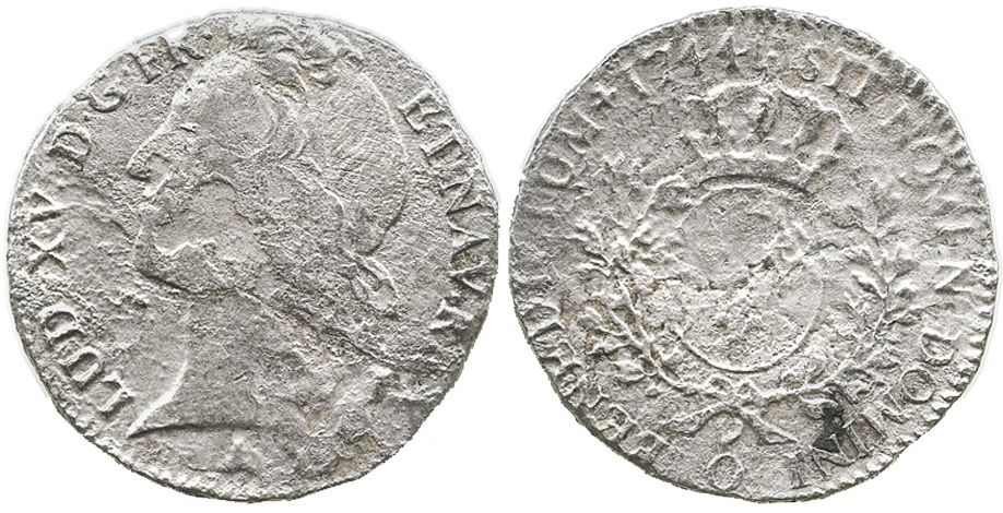 France (Riom mint), 1/2 ecu, Louis XV, 1744-O.