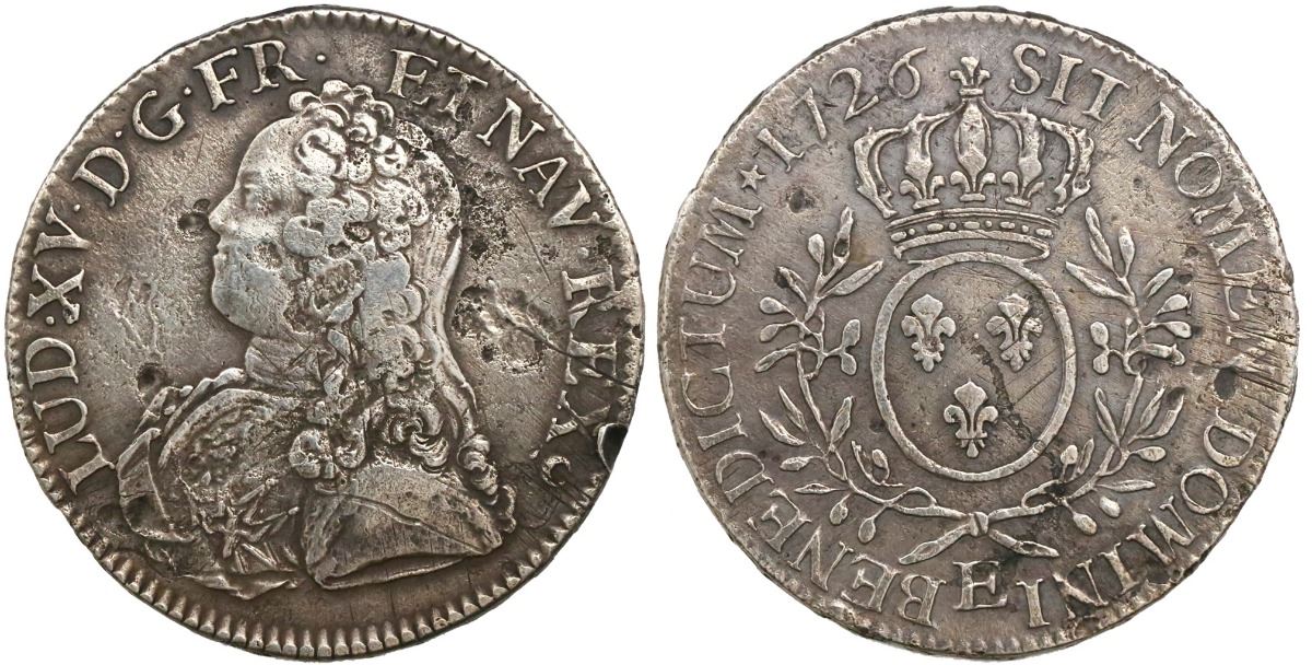 France (Tours mint), ecu, Louis XV, 1726-E.