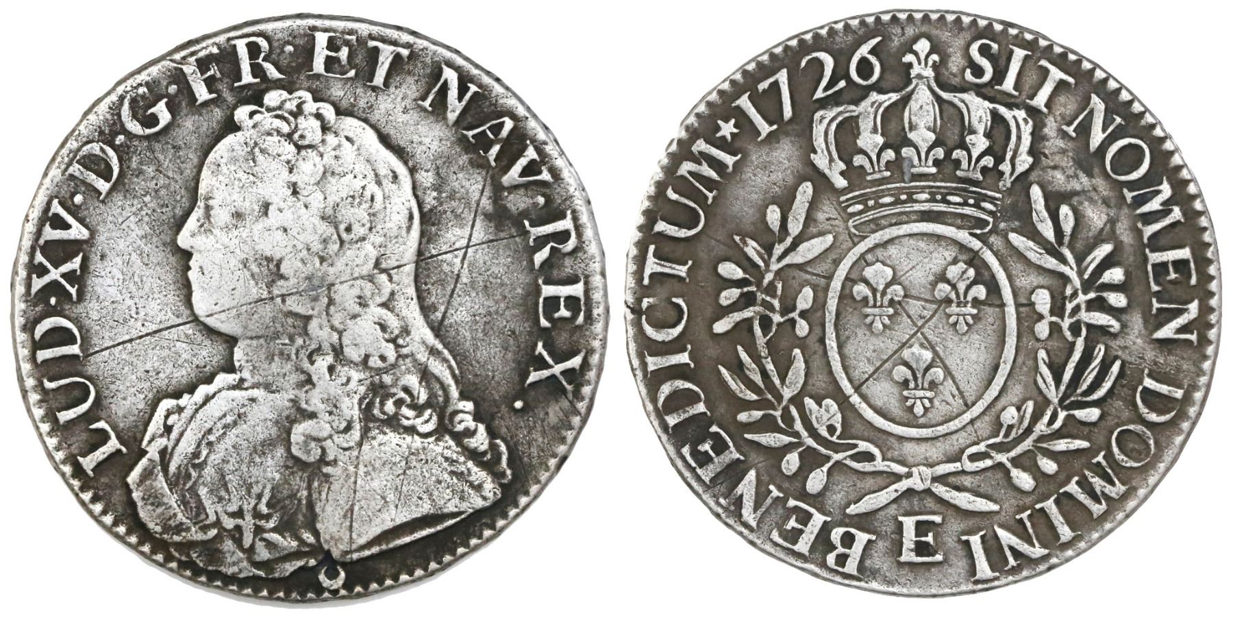 France (Tours mint), ecu, Louis XV, 1726-E.