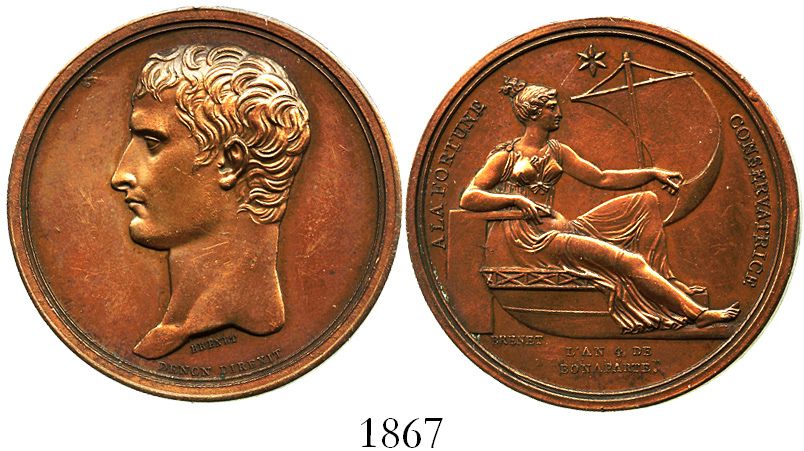 France, copper medal, Napoleon, AN 4 (1795/6), conservatrix fortune. 19.5 grams. UNC details with lustrous but lightly rubbed fields, attractive copper color.