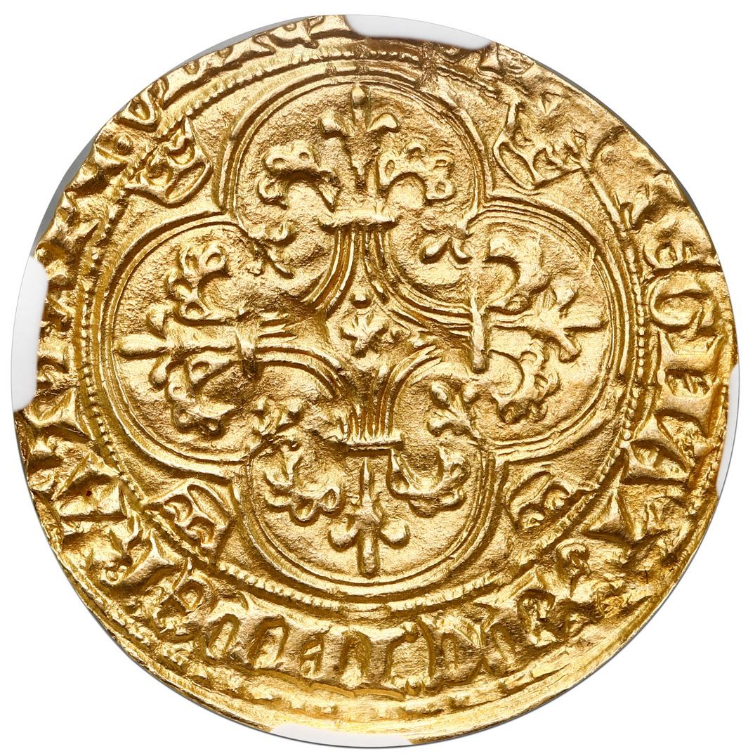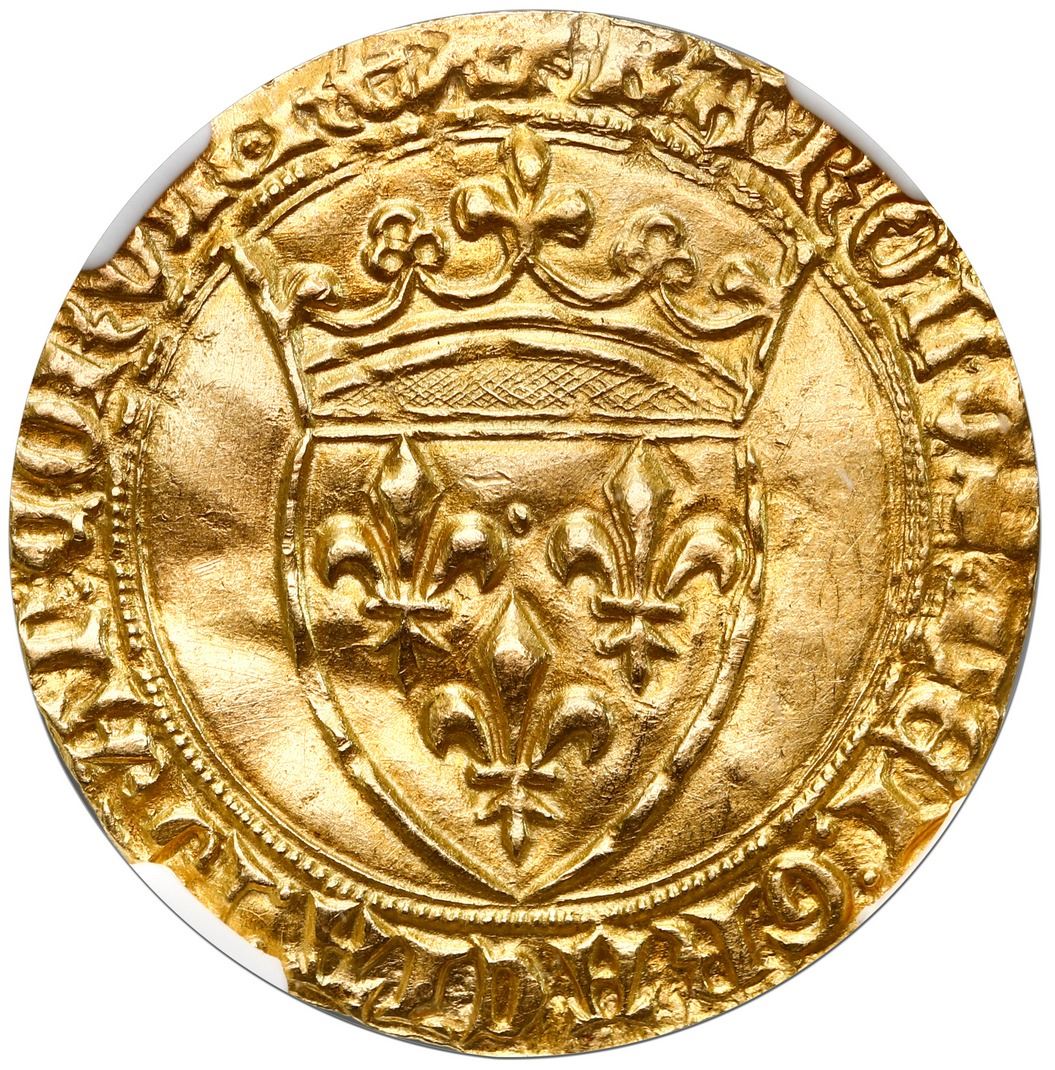 France, gold ecu d'or, Charles VI (1380-1422), no dots below letters, NGC MS 62.