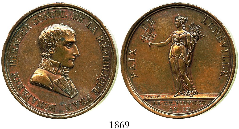 France, large copper medal, Napoleon, AN IX (1800/1), Peace of Luneville.