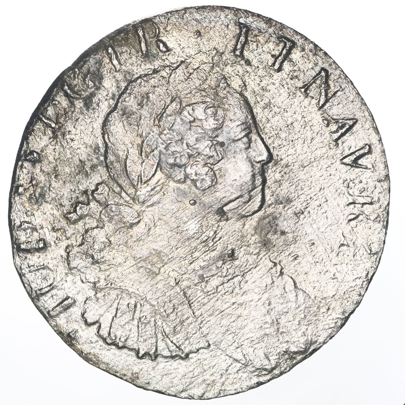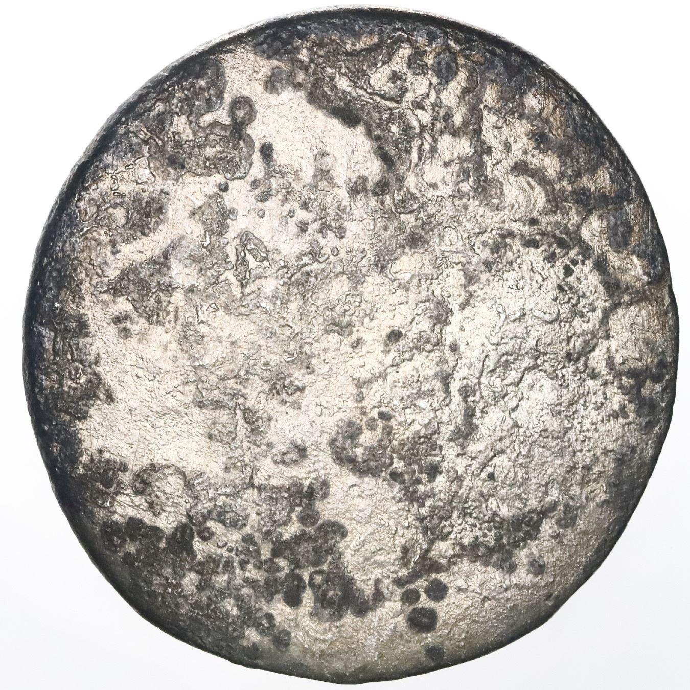 France (mint uncertain, probably Paris), ecu, Louis XV, date not visible (probably 1725-A). 11.66 grams. Corroded with smooth reverse but clear king's bust and partial legends on the obverse, bright silvery surfaces. From: Le Chameau, sunk in 1725 off Nova Scotia, Canada