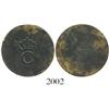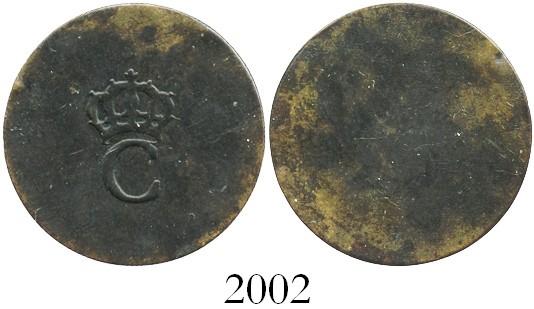 French Colonies, billon stampee (large crowned-C countermark on blank planchet, 1779). KM-2. 1.4 grams. VF, darkly toned all over.