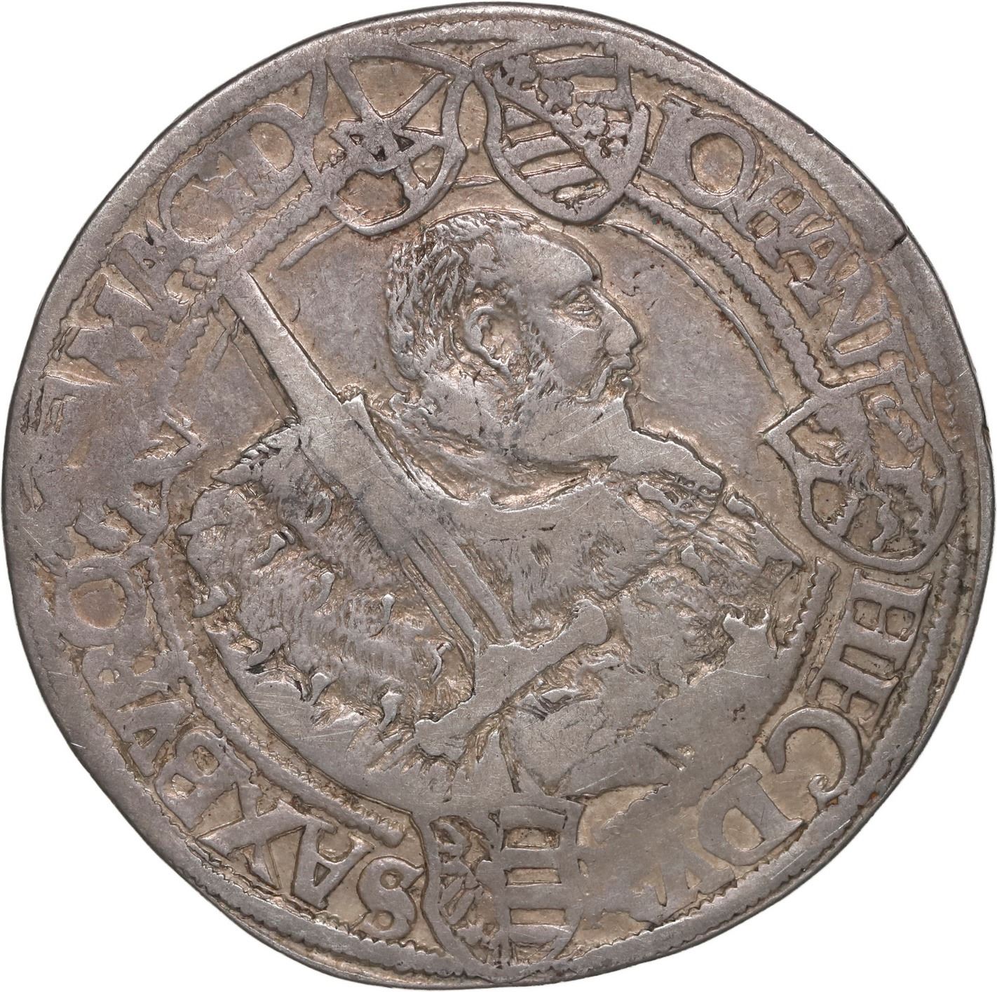 GERMAN STATES, Saxony (Ernestine line), Buchholz mint, taler, Johann-Friedrich and Moritz, 1543. Dav-9735. 28.77 grams. XF with light golden toning over luster in crevices, old graffiti "HM" lightly inscribed in front of Moritz's face.