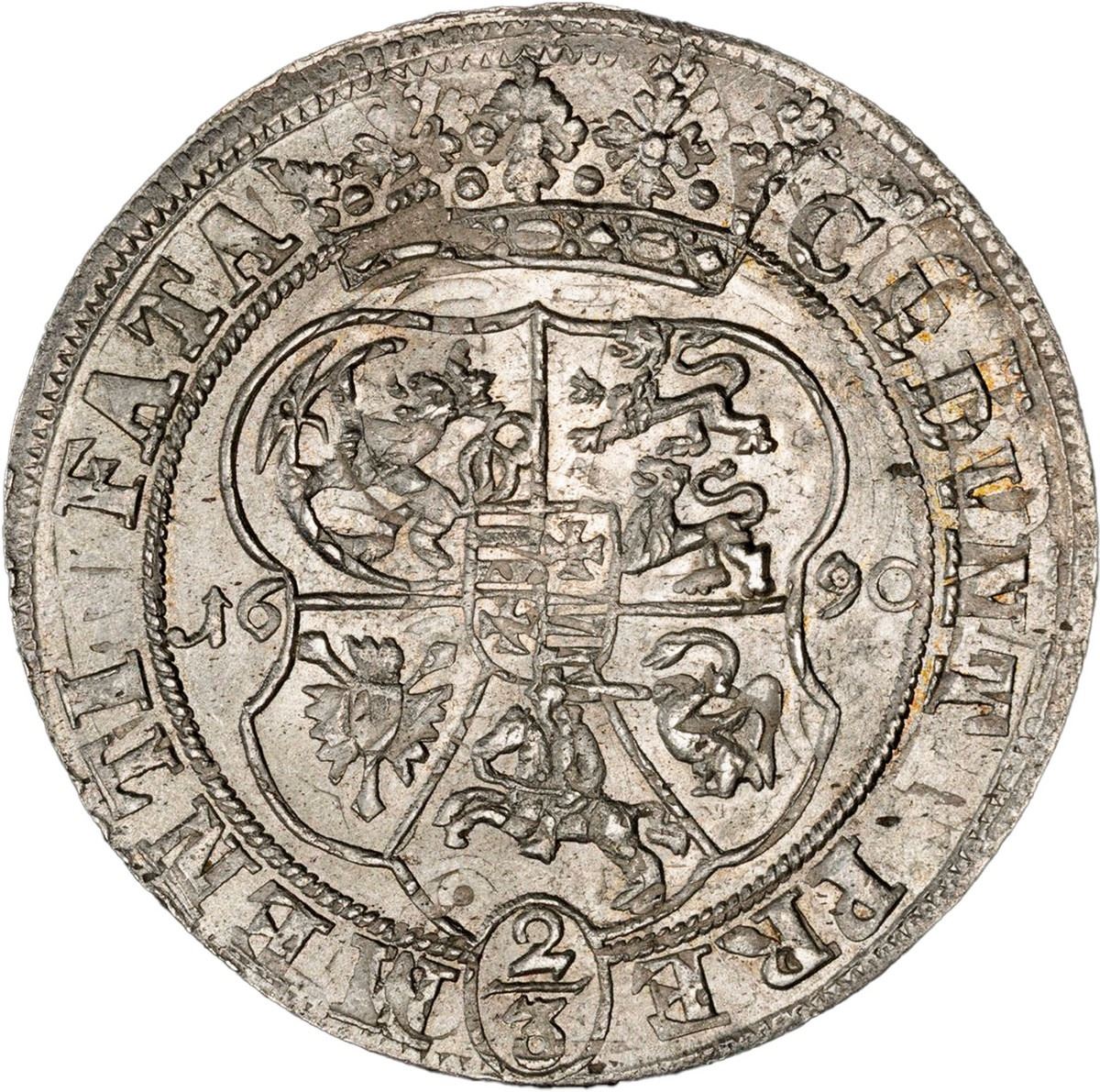 GERMAN STATES, Schleswig-Holstein-Ploen, Glückstadt mint, 2/3 taler, Johann Adolph, 1690, double-str